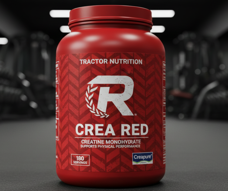 CREA RED من Tractor Nutrition هو مكمل كرياتين مونوهيدرات عالي الجودة يدعم زيادة قوة العضلات، تحسين الأداء في التمارين عالية الشدة، وتسريع استشفاء العضلة بين المجموعات.