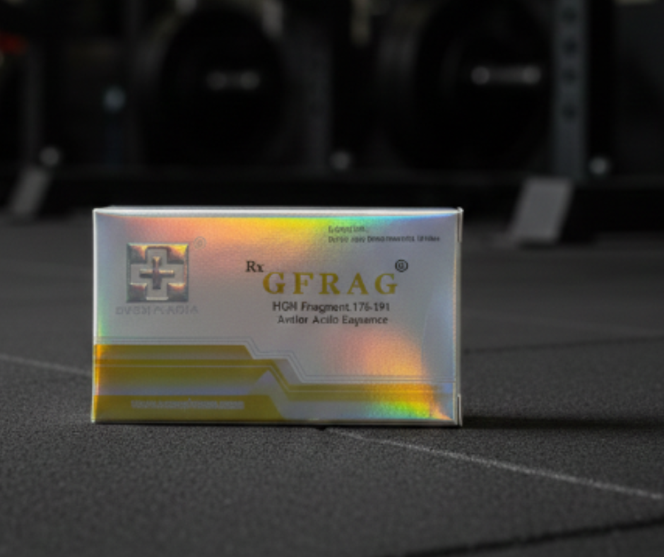 العبوة مكتوب عليها “HGH Fragment 176‑191” واسم المنتج GFRAG.