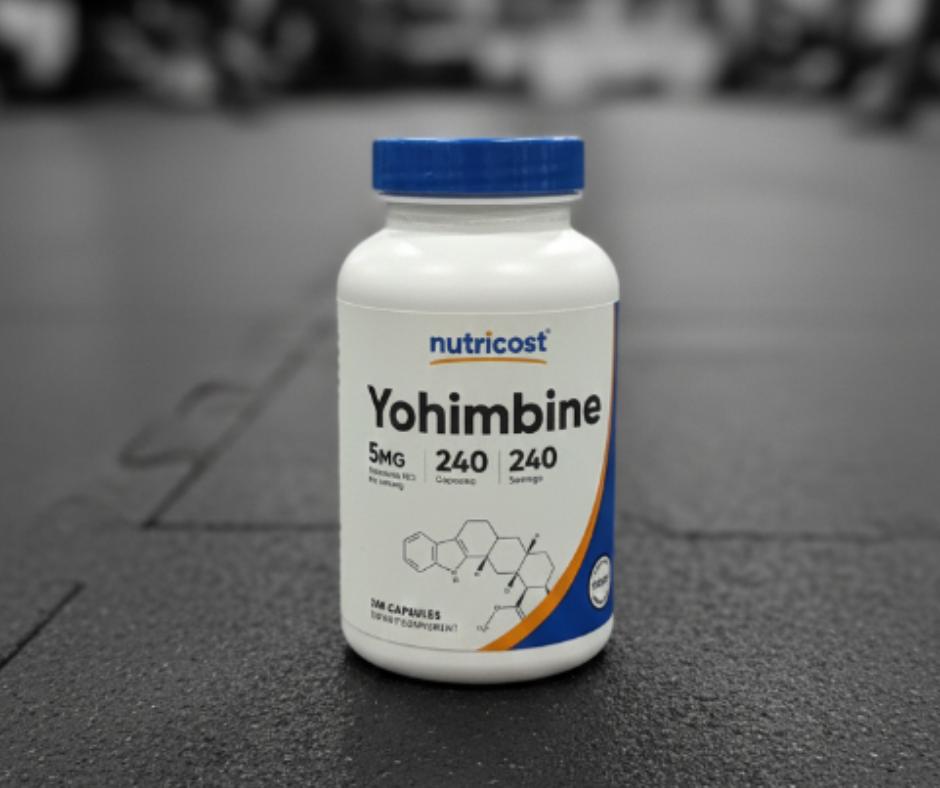 العبوة الظاهرة: Nutricost Yohimbine بتركيز 5mg لكل كبسولة، وعدد 240 كبسولة (حسب الملصق).