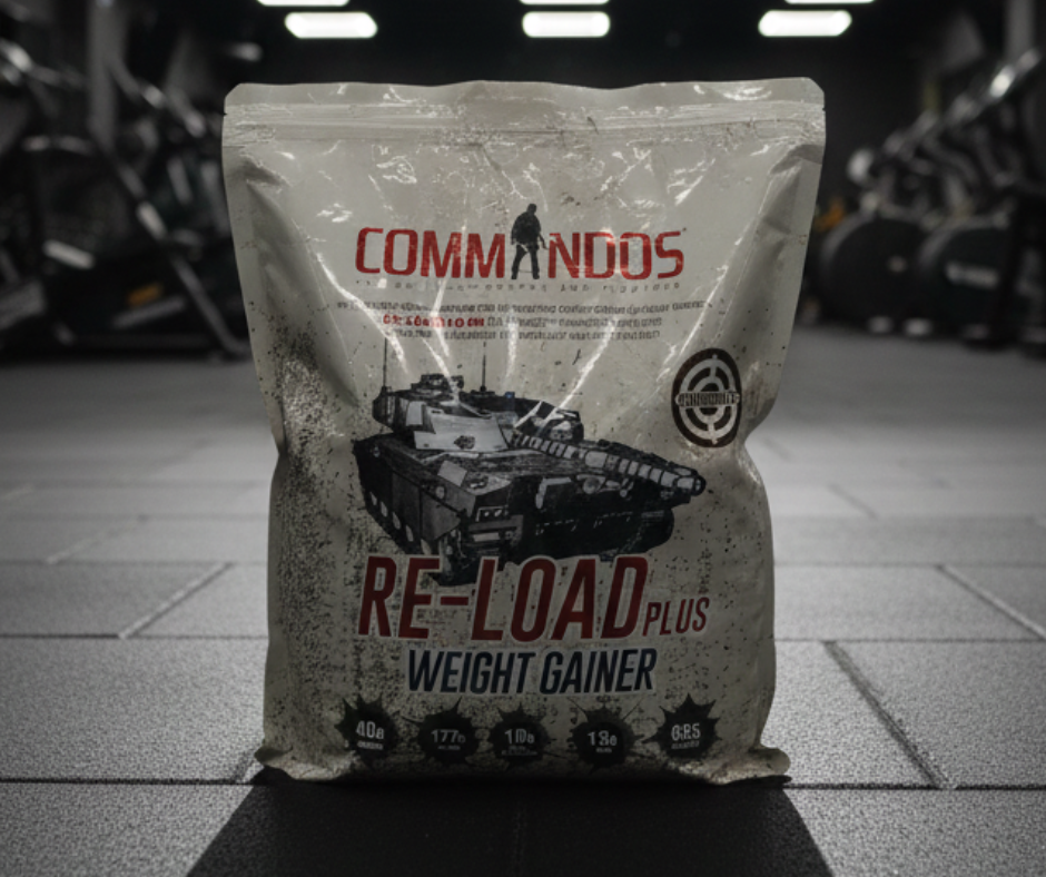 Re-Load Plus من Commandos هو مكمل ماس جيينر مصمم لتوفير جرعة عالية من السعرات عبر مزيج من الكربوهيدرات المعقدة والبروتين، لمساندة زيادة الكتلة العضلية والوزن بشكل تدريجي ومستمر.