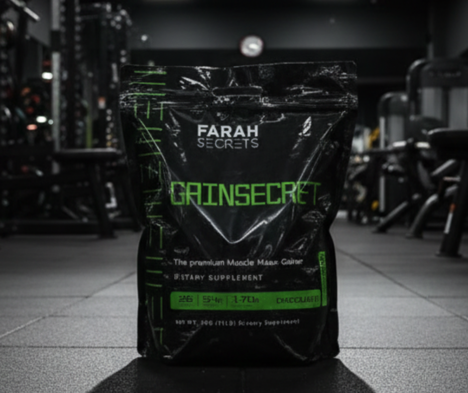 GAINSECRET من Farah Secrets هو مكمل ماس جيينر مخصص لبناء العضلات وزيادة الوزن من خلال مزيج متوازن من الكربوهيدرات عالية الطاقة مع بروتين يدعم النمو العضلي والاستشفاء.