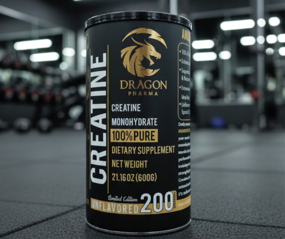 كرياتين مونوهيدرات من Dragon Pharma هو مكمل 100% نقي صُمم لزيادة مخزون الطاقة السريعة داخل العضلات، ما ينعكس على قوة أعلى، أداء أفضل، ورفع القدرة على تحمل التمارين الشديدة.